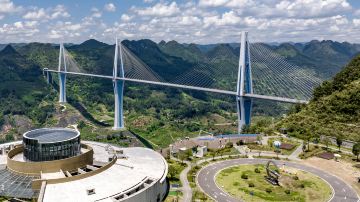 平塘天空之桥是余庆至安龙高速公路平塘至罗甸段平罗高速的控制性工程,大桥横跨槽渡河峡谷,主塔高332米,相当于110层楼高,是目前世界上桥塔较高的三塔斜拉桥。因气质轻灵飘逸,行走在桥上比坐飞机更有在天空中的感觉,被赋予“中国天眼看天空之桥”的美誉。