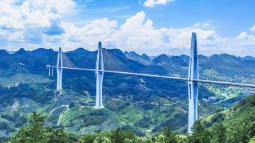 ☆平塘“天空之桥”是余庆至安龙高速公路平塘至罗甸段平罗高速的控制性工程,大桥横跨槽渡河峡谷,主塔塔高332米,相当于110层楼高,是目前世界上桥塔较高的三塔斜拉桥。因气质轻灵飘逸,宛若“天空之桥”,行走在“天空之桥”上比坐飞机更有在天空中的感觉,被赋予“中国天眼看天空之桥”的美誉。