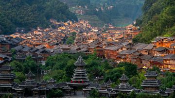 肇兴侗寨有被载入吉尼斯纪录的侗寨鼓楼群,鼓楼特色不一。肇兴原名“肇洞”,是一个东西向的狭长谷地,两条小溪汇成一条小河穿寨而过,河面跨有六座风雨桥,风雨桥因桥上建有长廊式、可遮蔽风雨的桥屋而得名。