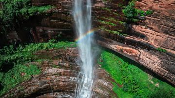 赤水燕子岩国家森林公园位于风溪河西岸,位于赤水市区20公里处,与十丈洞瀑布风景区紧邻。总面积16万亩,由燕子岩、皇水沟、石闪坪、恒山林海等四大景点构成,景区环境封闭,森林原始,生态系统完整,地势险峻,风景旅游资源独具魅力、气势恢弘,燕子岩的代表景点是燕子岩瀑布,燕子岩瀑布没有十丈洞瀑布那么宽,高度却是十丈洞瀑布望尘莫及的。窄长的水流从崖顶坠下,山、树木、水都显得非常细致。这里的森林景观、瀑布景观和丹霞地貌浑然一体,品味极高,独具翠、秀、幽、奇、绝,是中外旅游者观赏自然生态风光的理想胜地,也是科普考察的重要基地。