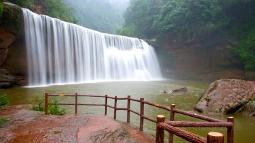 景区中知名的应该是赤水大瀑布,也被称为十丈洞瀑布,位于贵州省赤水市南部。瀑布悬挂在红色丹霞悬崖上,比黄果树瀑布还要高8米,因此来景区游玩,瀑布是必体验的。游客走过景区大门有一条岔路,一边是游客步行的路,另一边是电瓶车走的公路,可自行选择。步道的路上可以一路欣赏丹霞地貌,呼吸新鲜空气。走到底就是赤水大瀑布了,壮美的瀑布倾泻入潭水,溅起的水花晶莹剔透,发出的瀑布声轰鸣震耳,运气好的话在阳光下还能看到彩虹。攀上潭水中的巨石,就能近距离感受瀑布。地址:贵州省遵义市赤水市两河口镇