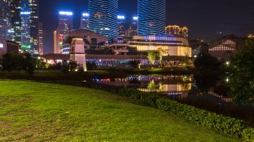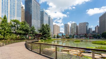 花果园湿地公园位于贵阳市的核心地带,周边被树木繁茂的云贵山所包围。花果园湿地公园有古树银杏,吉祥如意的罗汉松,十里飘香的桂花,它们同五颜六色的花草、湖中的鱼鸟等一起组合成了一幅美丽迷人的风景画。